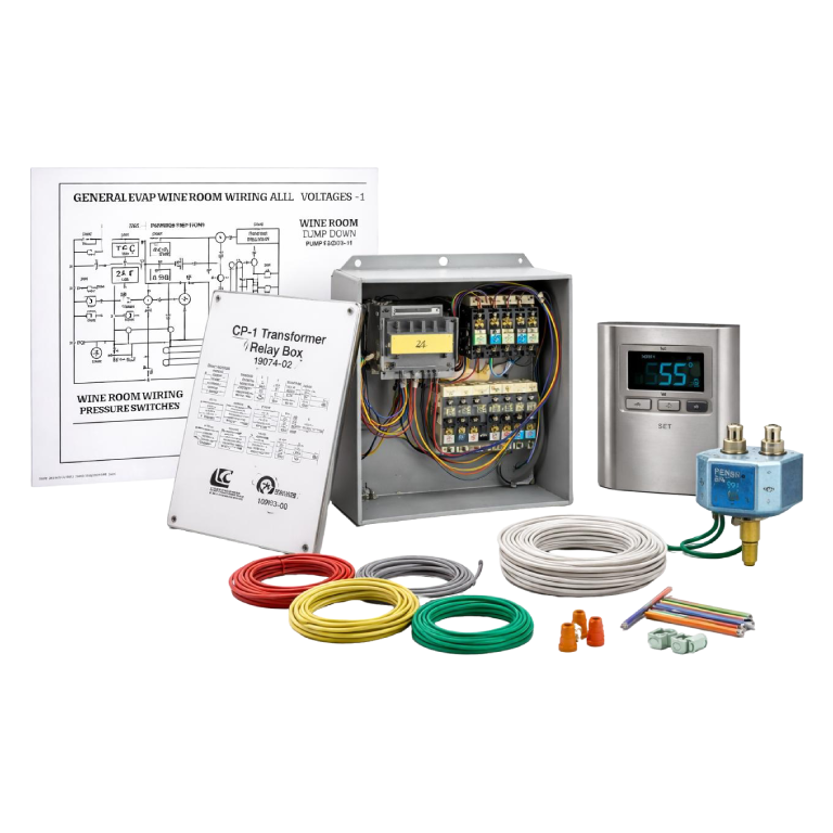 This page provides downloadable wiring diagrams for LRC control and wiring systems, including the CP-1 Transformer Relay Box (19074-02), General Evap Wine Room Wiring for all voltages, and Wine Room Wiring Pump Down 24V. These documents are intended to support proper installation, safe electrical connections, and efficient troubleshooting for wine room refrigeration applications. Select the appropriate wiring diagram below to confirm correct wiring, control logic, and option configurations before startup or service.